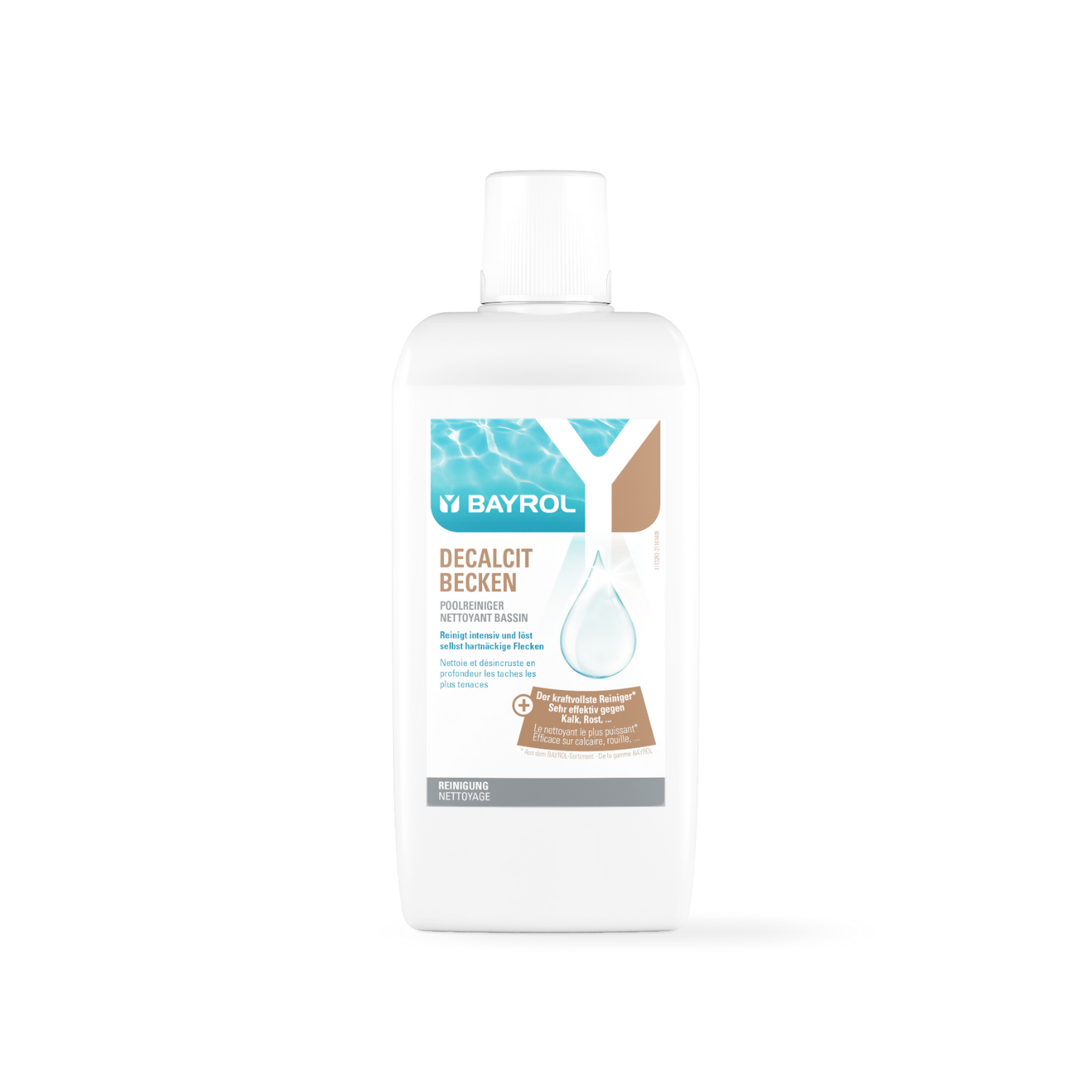• Mit Decalcit Becken lassen sich schmutzige Kalk- und Sedimentablagerungen im Schwimmbecken wirksam beseitigen.
