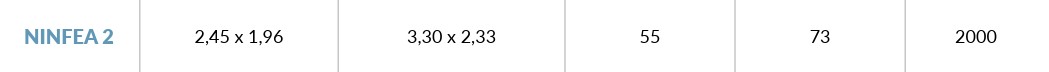 Die ästhetische Verkleidung aus nautischem Seil macht Ninfea zu einem Produkt mit einzigartigem Design, aber seine große Innovation besteht im Befestigungssystem an der Struktur des Minipools, das eine schnelle und einfache Installation/Demontage ermöglicht. Die Verkleidung besteht aus einer lackierten Aluminiumstruktur, auf die ein nautisches Seil aus Polypropylen-Fäden handgewebt ist.